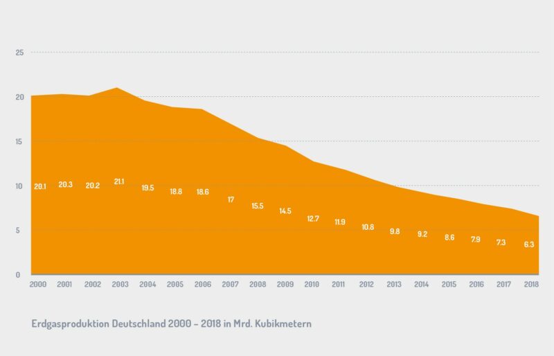 Die Erdgasproduktion in Deutschland 2000 - 2019